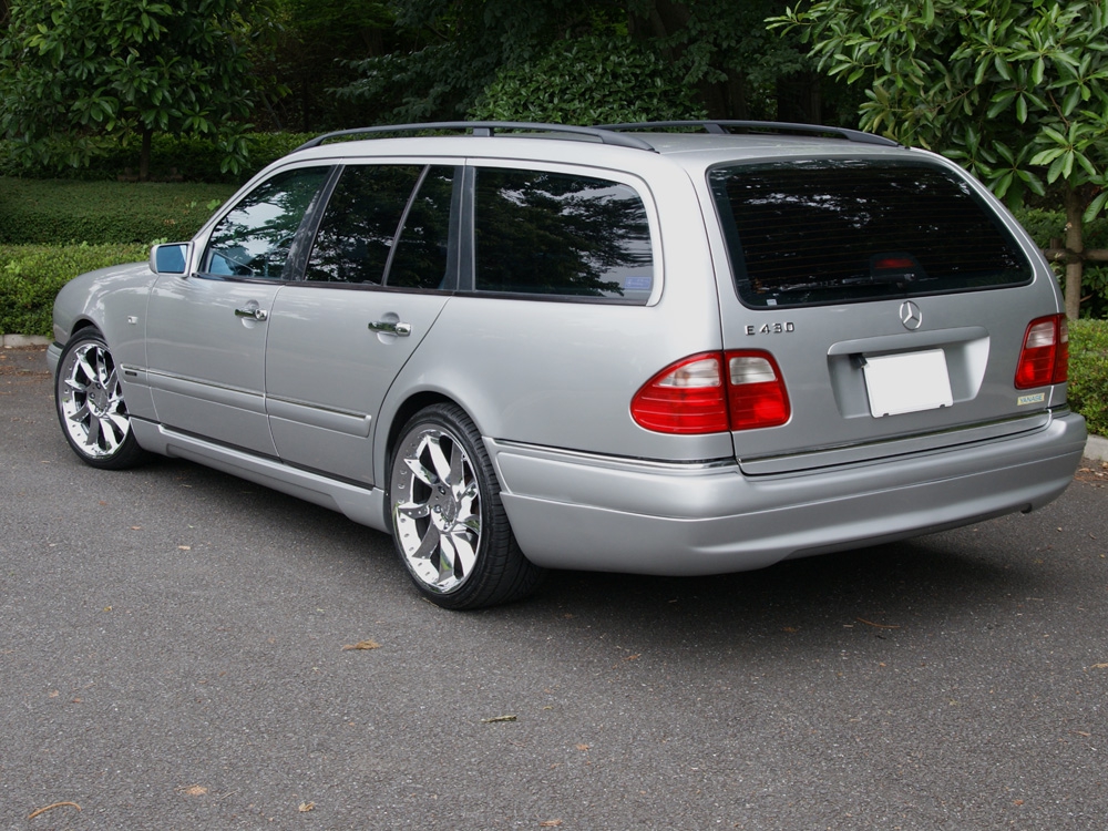 高額オプション多数のお買い得車両が入庫いたしました! なんといってもV8サウンド!少し踏み込むだけであっという間にトップスピードへ加速してしまう273馬力のパワーはステーションワゴンにはとても贅沢です。 高額オプション多数のお買い得車両が入庫いたしました! 重たい車重も楽々運んでくれます。室内も広々、荷室にはゴルフバック5個楽々積めます! V6よりも故障も少なく燃費も良いし、トラブルの少ないV8はとても維持しやすいモデルです。W210によくあるミッションやエアコンのトラブルも現車はとても調子良いです!オイル上がりもなくブレーキもとても効きます! 外装はWALDのスポイラーキットでスポーティーに仕上げて車高はそのままですので、わけのわからないカスタムにより足回りを痛めてる車両とはわけが違いますよ!アルミは19インチクロームですが、18インチAMGもご用意可能!高速走行をメインにする場合は18インチがいいと思います。